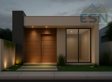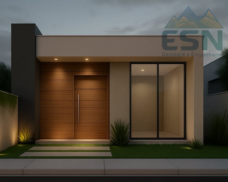 Projetos arquitetônicos e acompanhamento técnico de obras residenciais.